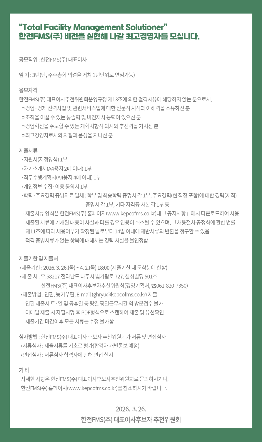 한전FMS(주) 대표이사 모집