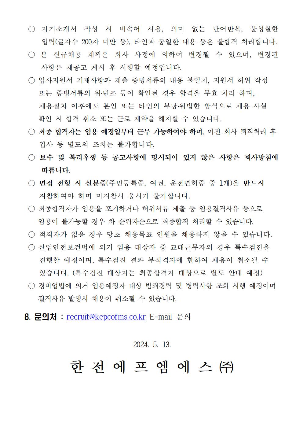 (호남) 한전본사 출입보안 계약직 채용 공고