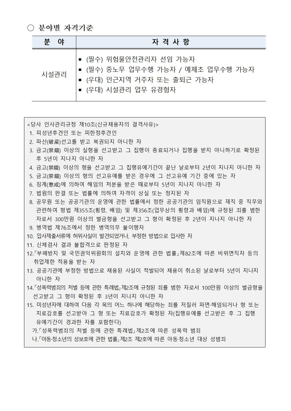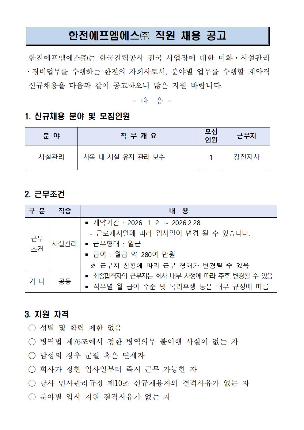 (호남) 강진지사 시설관리 채용 공고