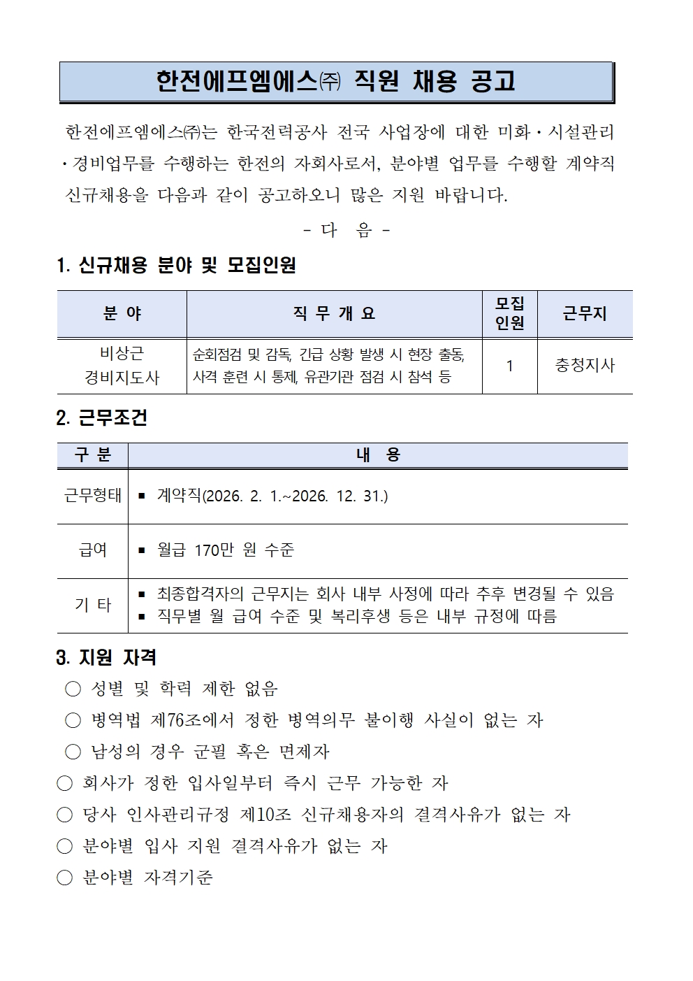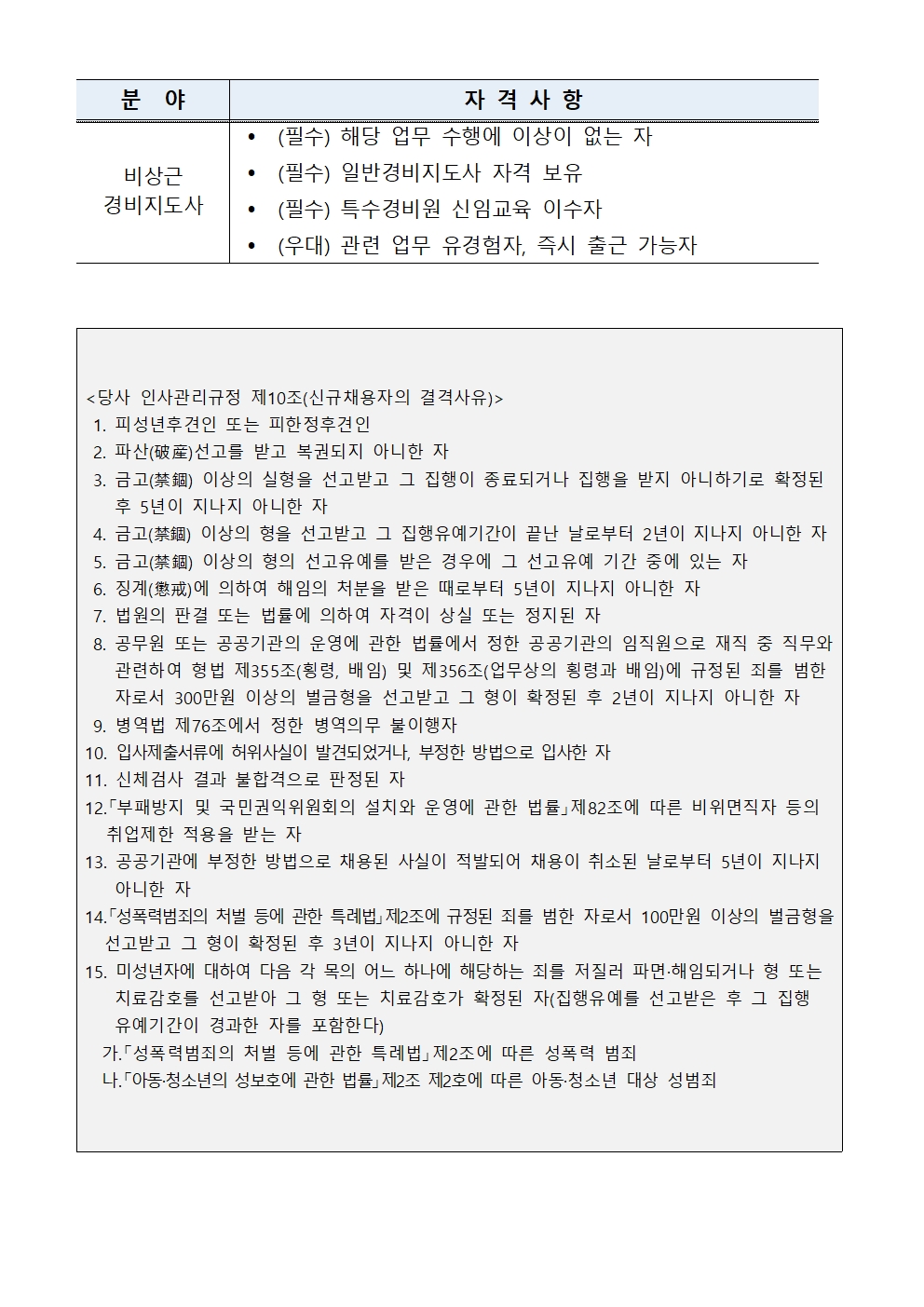 (충청) 충청지사 비상근경비지도사 단기계약직 채용 공고