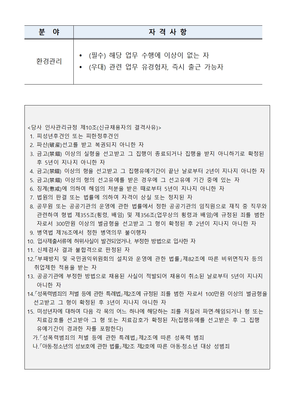 (경원) 경기본부전력관리 환경관리(중노무) 계약직 채용 공고