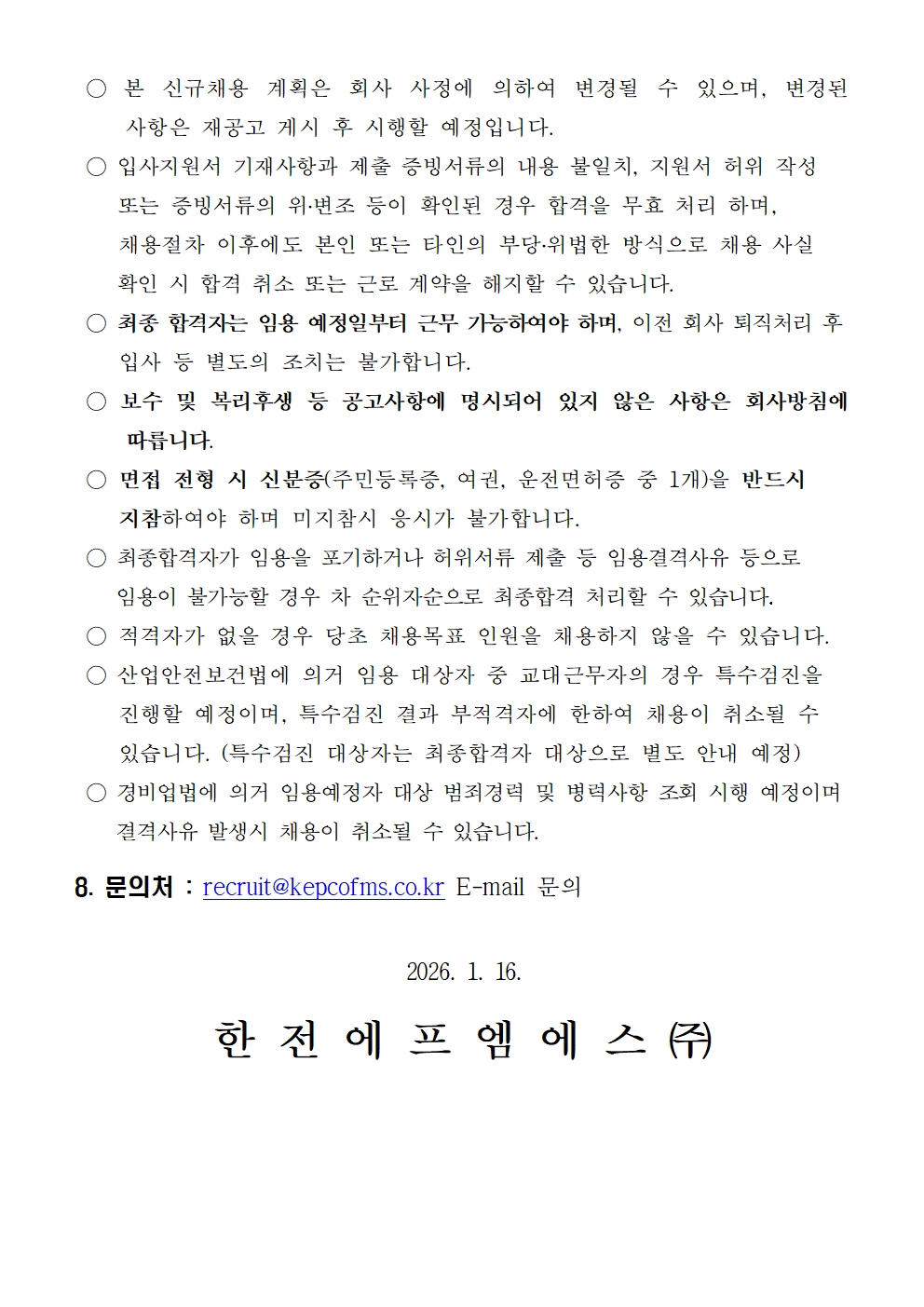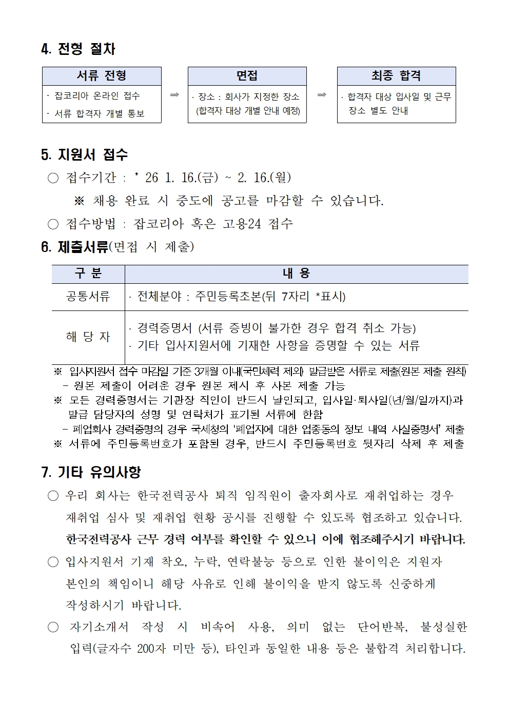 (충청) 전력연구원 시설관리원 단기계약직 채용 공고