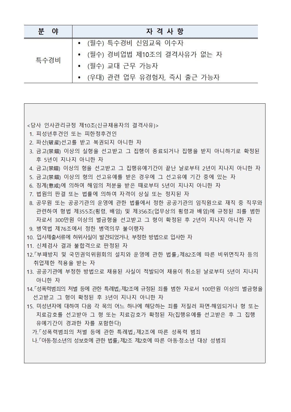 (충청) 신제천변전소 특수경비 단기계약직 채용 공고